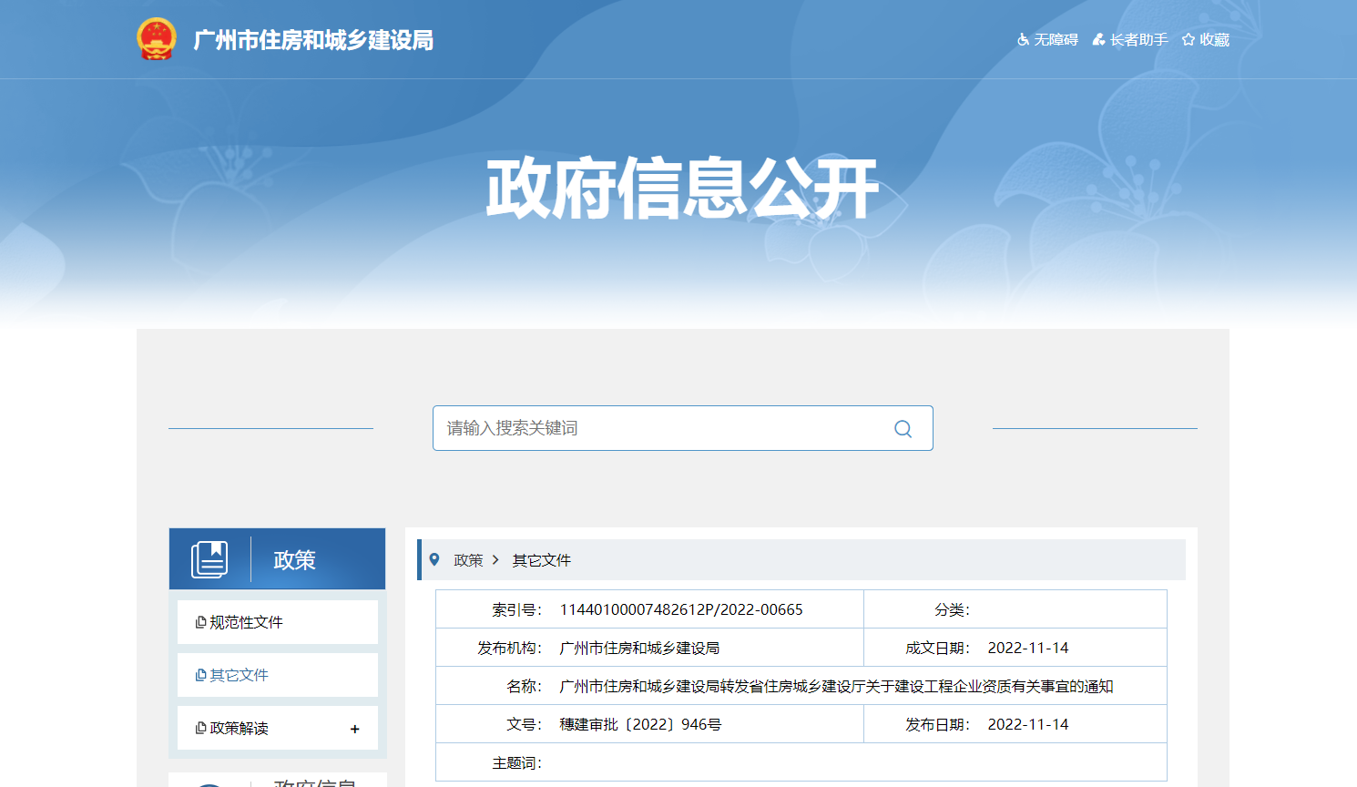 廣州市住房和城鄉(xiāng)建設(shè)局轉(zhuǎn)發(fā)省住房城鄉(xiāng)建設(shè)廳關(guān)于建設(shè)工程企業(yè)資質(zhì)有關(guān)事宜的通知 2022-11-14
